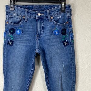 Lucky brand embroidered distressed cropped jeans pets premium