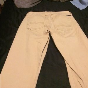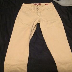 A slight tan to beige color with lots of 'lucky' gimmicks around the fashionable pair! Size 2/26, female cut. Truly not a stitch out of place, you'd these these came directly from the store! I suppose being that they were worn less than 5 times by a friend prior to her being over them, they're basically still new as is! Always willing to negotiate; not sure exactly what she paid as she isn't as worried; I know they can go from $75-$300+ brand new. Figured I'd shoot even lower, $60 total. OBO!