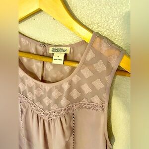 Lucky brand sleeveless top. Pretty flowy and loose fitting. Dusty lavender purple color. Has sheer detailing at the top, button closure in the back. Excellent condition!