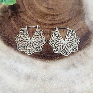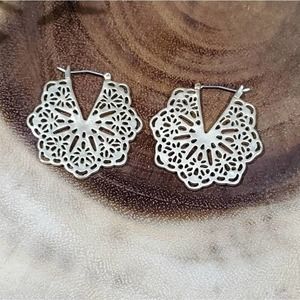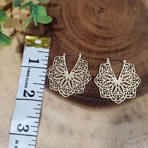 Lucky brand gold tone scrolled filigree hoop earrings new!