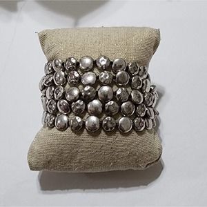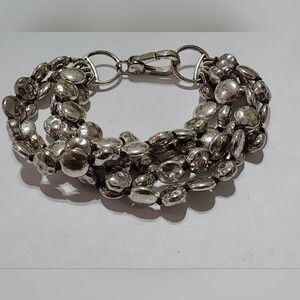 Lucky brand multi strand round disc silver tone bracelet