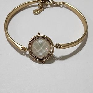 Lucky brand reversible teal and white circle brushed gold tone bracelet new!!!