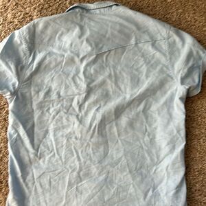 Lucky brand light blue, short sleeve, button down. In need of a good ironing job otherwise excellent condition. Size S