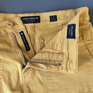 Lucky brand in yellow mustard solid shorts. Size 2 or 26 but could fit 4 too the buttons on the back could adjust.