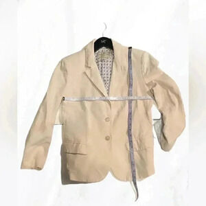 Lucky brand stylish tan casual day 2 nite long sleeve 2 button cream blazer 2