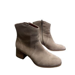 There is a knick that is in the heel of the one boot as shown in the photos. Aside that they’re beautiful boots. Great condition otherwise. Smoke free dog friendly home. Measurements are approximately 2” heel.