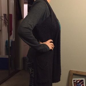 Cute grey sweater, sweatshirt like material for arms/back... more knitted on front panels.great condition!