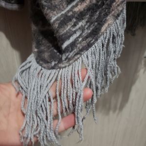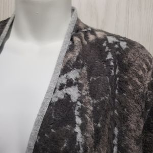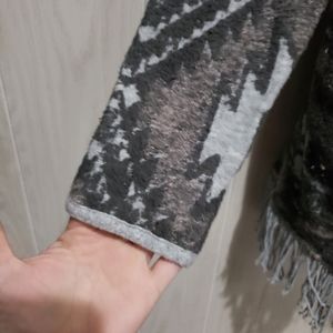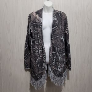 EUC Lucky brand cardigan sweater size M. Gray with Aztec tribal print. Has fringe on the bottom. Such a wonderful piece!