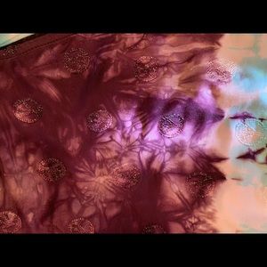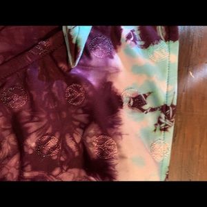 Bottoms with purple and blue Tie-dye, embroidered peace signs, with tie down sides