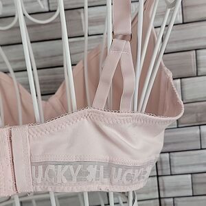 Soft pink color with comfort straps and lucky brand logo accent band. Size tags are missing but measured I put this bra at 30C. Good pre-owned condition.