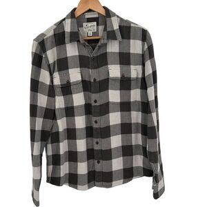 Lucky brand untuck fit gray white buffalo plaid flannel button up size medium