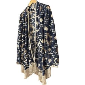 Lucky brand Aztec print fringed brushed knit cardigan M