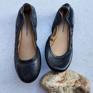 round toe black leather flats. Preloved condition. All sections of interest as well any known flaws have been documented in the photos and noted as thoroughly as possible. if there are no known flaws, none will be noted. Please feel free to ask any questions before purchase 🙂.
