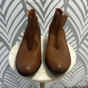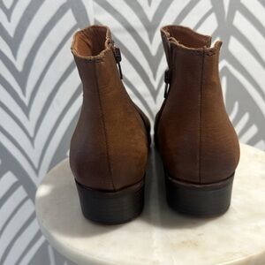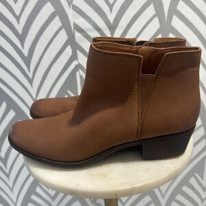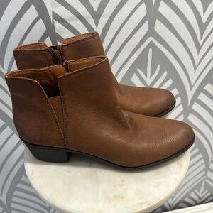 Lucky brown leather ankle boots. Leather uppers. Size 9. Size 9. Stacked heel is 1.5 inches. Worn once. No visible flaws