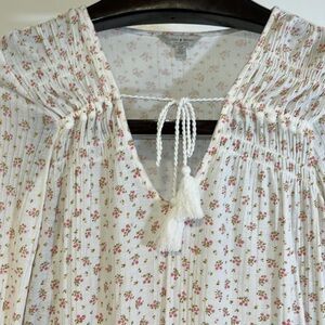 Lucky, brown women’s size SP cotton, long sleeve floral blouse