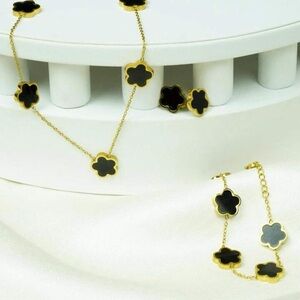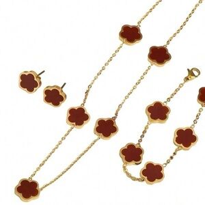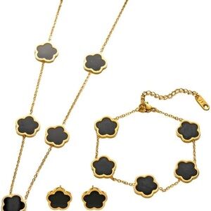 Lucky clover 18k gold color set necklace bracelet and earrings