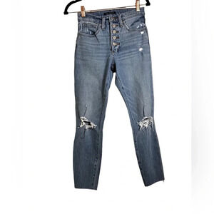 Lucky Brand jeans, Bridgette high rise crop, distressed skinny jeans, exposed button fly denim, Lucky Brand size 25, women’s cropped denim