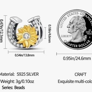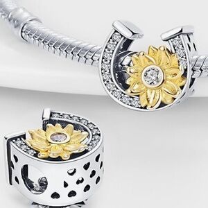 Lucky horseshoe with a sunflower silver slide charm fits all pandoras 925