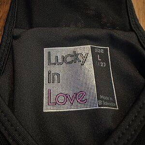 Serve up some style on the court with this fun Lucky in Love tennis tank top! This racerback tank features a sleek black design with eye-catching silver stars scattered across the front. It's the perfect top to add a bit of sparkle to your game.