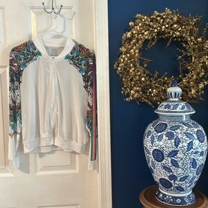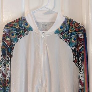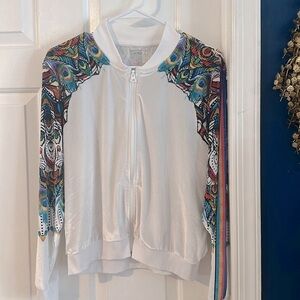 Lucky in Love White & Multicolor Long Sleeve Full Zip Athletic Jacket Size L