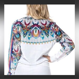 Lucky in Love White & Multicolor Long Sleeve Full Zip Athletic Tennis Golf Jacket