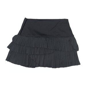 elastic waistband, tiered pleats made of lightweight pindot mesh, built-in compression short, and moisture wicking fabric.