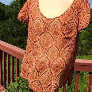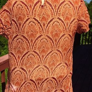 Lucky 100% silk short sleeve blouse paisley Tangerine rust S