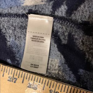 This Lucky Brand cardigan features a striking geometric pattern in shades of blue and gray, offering a unique and stylish look. The design showcases a blend of diamond shapes with a vintage-inspired distressed finish, perfect for adding a touch of sophistication to any outfit. Crafted for comfort and style, this cardigan is an ideal layering piece for cooler days. Like new condition & smoke free/pet free home. See ALL photos for complete description/details.