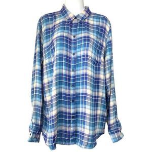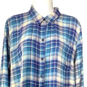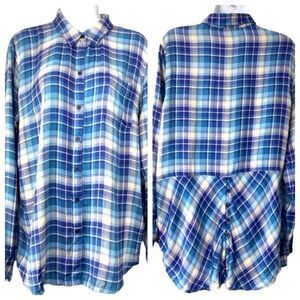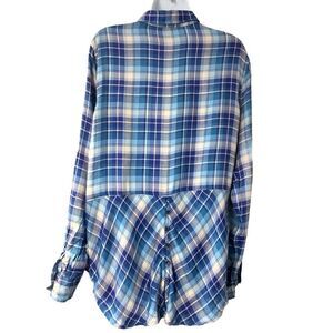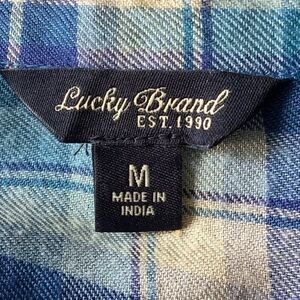 Lucky Brand Bungalow Back Button Detail Plaid Flannel Shirt M Tunic Button Up To