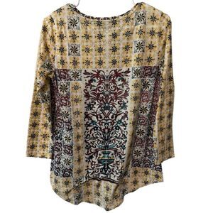 🌹Lucky Brand Cream and Brown Graphic 3/4 Sleeve Blouse