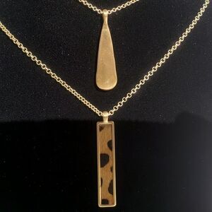 Lucky Brand double chain gold and leopard long necklace with dangling animal print & gold pendant charms. New NWT
