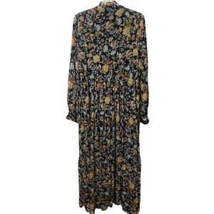 Lucky Brand Floral Long Sleeve Maxi Dress Size Large V Neck Boho