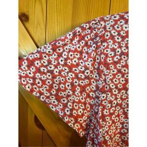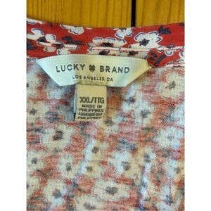 Lucky Brand Flutter Sleeve Top Size XXL Red Blue Floral Round Neck Lightweight (