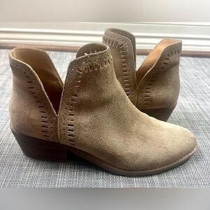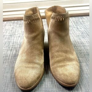 Lucky Brand Suede Leather Ankle boots. Slip on style with an almond toe.