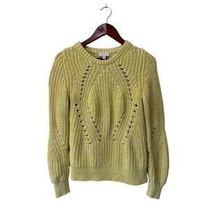 Lucky Brand Lemon Yellow Cable Knit Chunky Pull Over Crewneck Sweater Size S