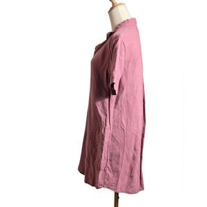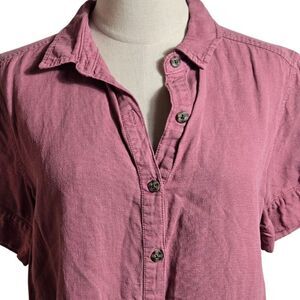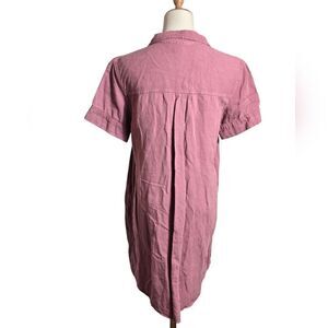 Check out this cute Lucky Brand mini dress! It's got a cool, casual vibe with its button-up front and short sleeves. The dusty rose color is super trendy right now. You could totally rock this with some sneakers or sandals for a chill day out. It's comfy and easy to wear! Good overall condition