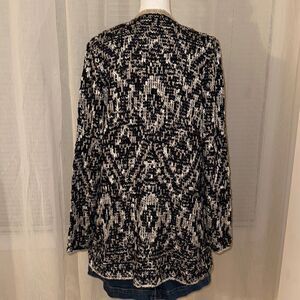 Lucky Brand M Navy White Tan Boucle Cotton Wool Nylon Blend Open Front Cardigan