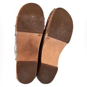 Lucky Brand Peace Sign Leather Wooden Clogs