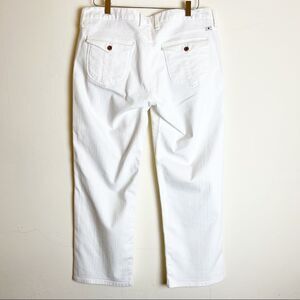Lucky Brand Plus Size Pearl Sweet Jean Crop Flap, Size 14/ 32 Waist NWOT- Cropped white denim jeans with twist on the classic five pocket design. Back pockets have a button flap closure.