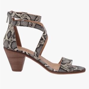 Lucky Brand RESSIA Leather. Natural Snake Print Crisscross Strap Open Toe Heeled Sandals