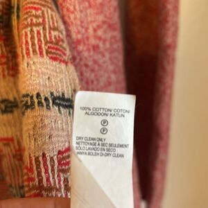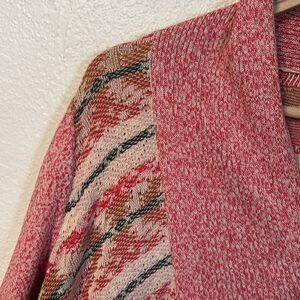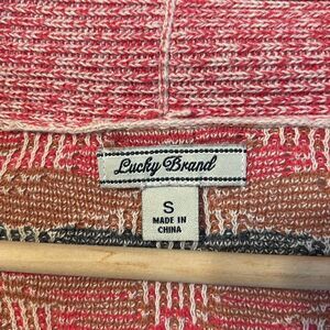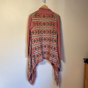 Red and brown Southwest pattern open front swing waterfall cardigan from Lucky Brand. Size small.