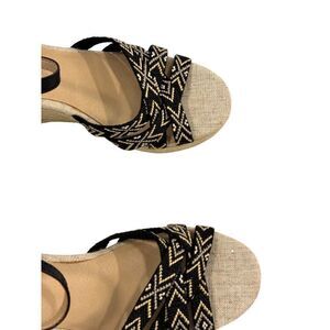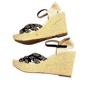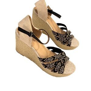 Lucky Brand Tribal Print Strappy Wedge Sandals w/ Buckle Sz 7.5 EUC