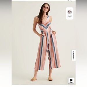 Lucky Brand V-Neck Striped Jumpsuit Multicolored Size Small