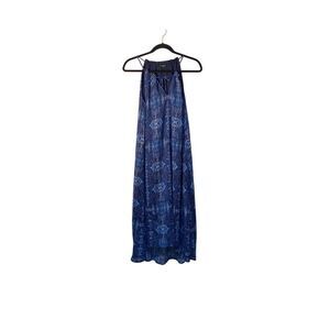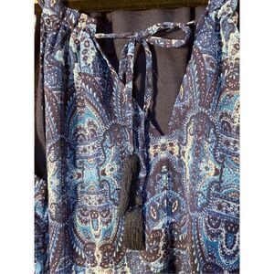Lucky brand women’s paisley print blue tassel front tie slip dress Boho pit to pit 19 inches length 44 inches