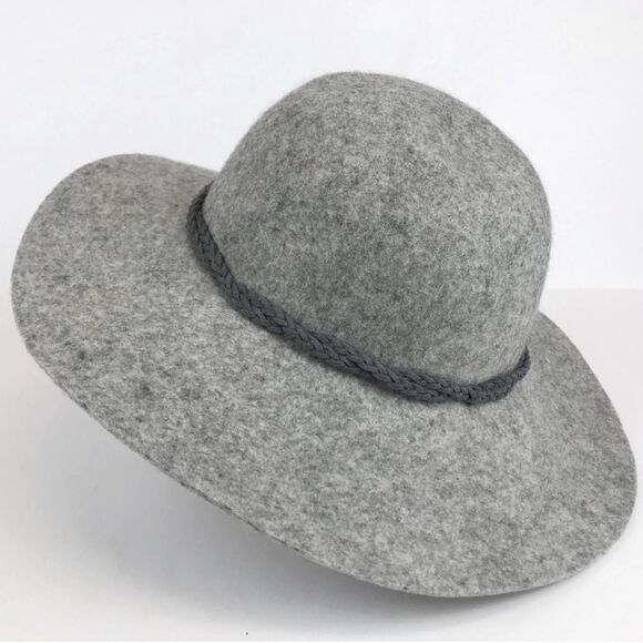 Lucky Brand Women's Felted Wool Roped Band Gray Floppy Boho Fall Winter Sun Hat