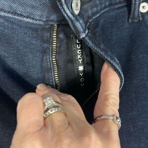 VERY Dark Blue. Pics look more black Lucky Brand Women’s Jeans Sweet Mid Rise Boot Cut Jeans size 14/32R New with tags Advanced Stretch