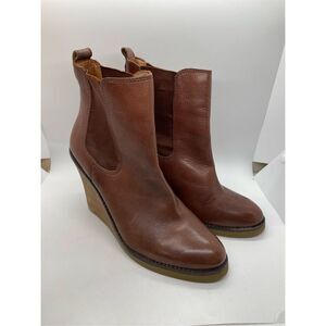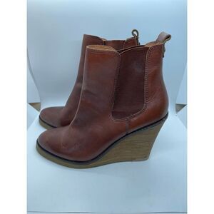 Lucky Brand Women's Fedora Cognac Brown Chelsea Stacked Heel Wedge Boots Size 10