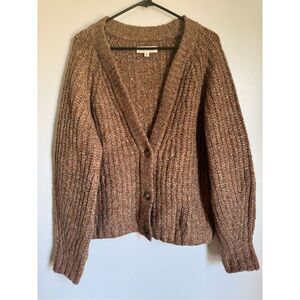 Lucky Brand chunky brown button wool shaker cardigan sz M women’s knitted cozy minimalist
