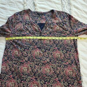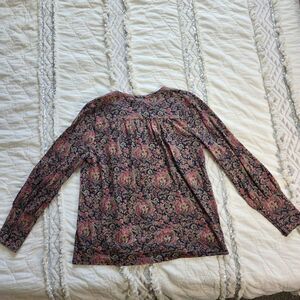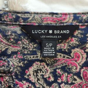 Lucky Brand paisley peasant top in magenta, blue, and tan. Lantern sleeve. Women's small.