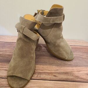 Lucky Brand Beige Suede Open Toe Heels Size 6M